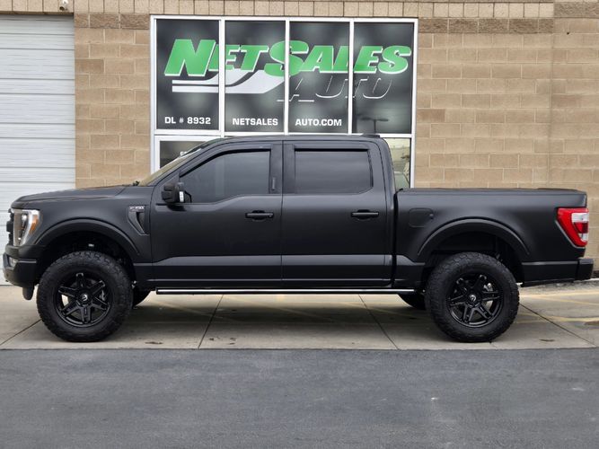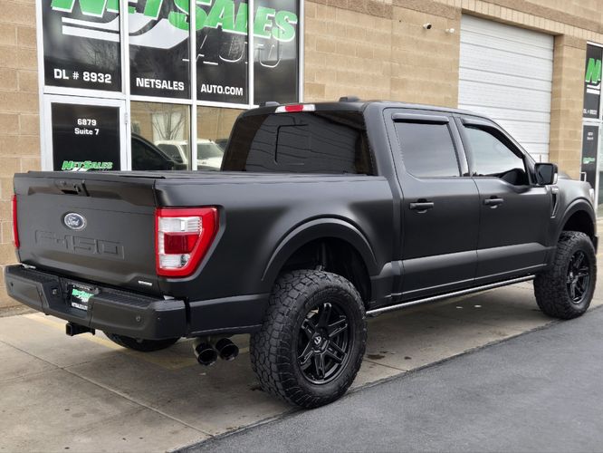 This 2023 Ford F-150 LARIAT 4WD SuperCrew 5.5’ Box is not your average half-ton. With an original MSRP of $82,570.00 and over $15,000 in premium upgrades, this truck blends factory luxury with aggressive custom styling. Powered by the 2.7L EcoBoost V6 delivering 325 horsepower and 400 lb-ft of torque through a 10-speed automatic transmission, it offers impressive performance, towing capability, and everyday drivability. Wrapped in a full matte black body wrap and sitting on upgraded wheels and tires, this F-150 commands attention everywhere it goes.